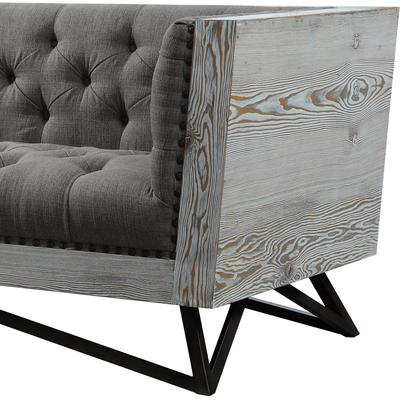 Features: • These products contain wood, and each piece is a one-of-a-kind product. Please note, there will always be some type of variation to wood grain or color. No two trees are alike, and any imperfections will only increase the unique nature of the piece. • High quality hardwood construction is supported by durable black metal leg frame • Plush Gray fabric upholstery is accented by beautiful antique brown nailhead trim • Beautiful pine wood frame offers a unique spin on the traditional tuxedo sofa design • Comes with standard 1 year limited warranty