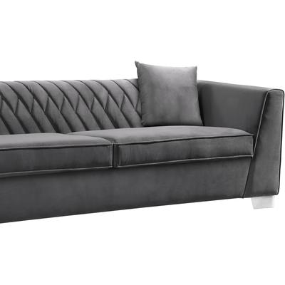 The Excelsior Hospers contemporary sofa is an ideal piece to have in any modern living room. This exquisite sofa combines the durability of a metal and birch wood frame with the comfort and sophistication of elegant velvet upholstery. Plush and inviting, the Hospers couch features a unique channel patterned back and two velvet throw pillows for enhanced support. The Hospers's brushed stainless steel legs perfectly accent the rich upholstery and elegant design of the sofa.