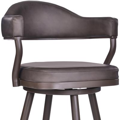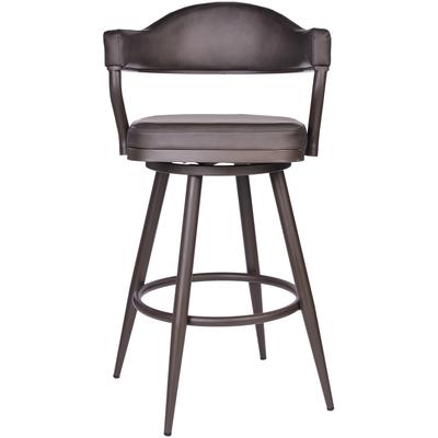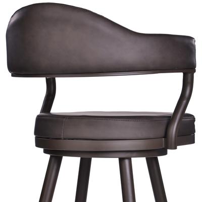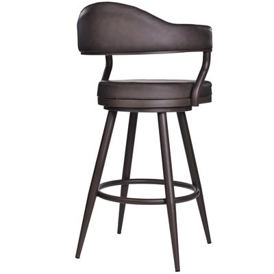 The Excelsior Raymond Contemporary Barstool is a gorgeous piece to have in any modern household. This elegant barstool boasts a durable Brown Powder Coated finished metal frame accompanied by sleek Vintage Brown faux leather upholstery. This exquisite combination endows the Raymond with a truly unique contemporary style without compromising on durability. The Raymond's low upholstered back is designed to hug the user, providing excellent lumbar support. The rounded upholstered seat features a 360-degree swivel function, allowing for enhanced mobility while seated. The Raymond's practical leg design features a convenient ringed footrest and floor protectors, assuring that the barstool will not damage hardwood or tile floors when moved.